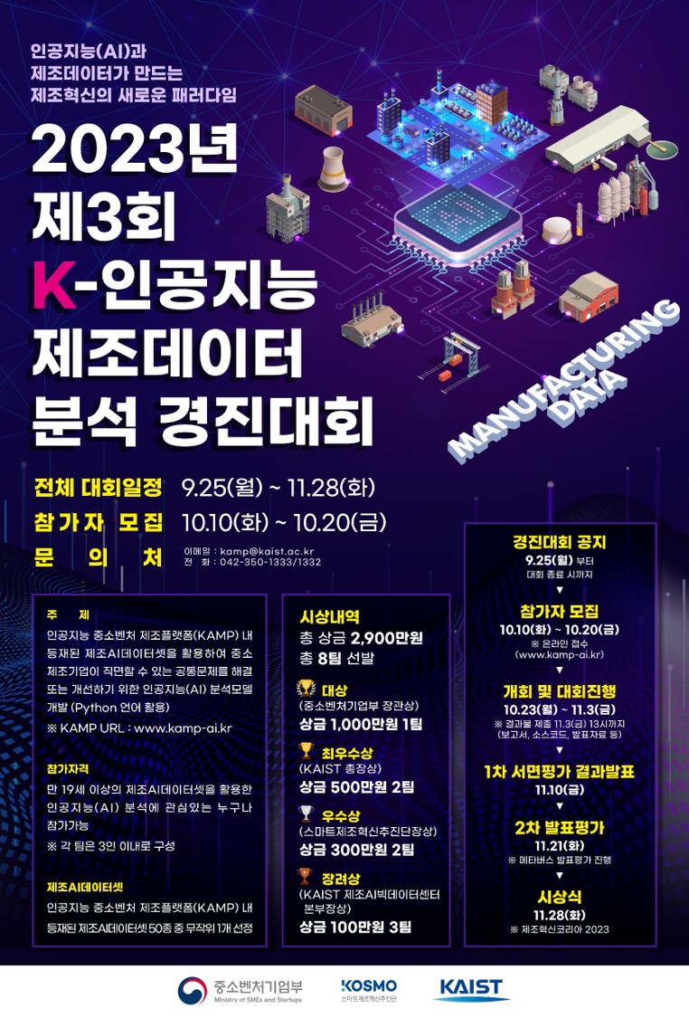 홍보영상 : 2023년 제3회 K-인공지능(AI) 제조데이터 분석 경진대회 공고 2023년 9월 KAIST 제조AI빅데이터센터